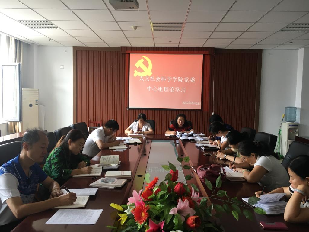 8月25日上午9点,人文社会科学学院在院楼六层会议室组织党委中心组理论学习。本次学习由院党委书记雷丽蓉主持。全体院领导、各党支部书记、各科室负责人参加了学习活动。