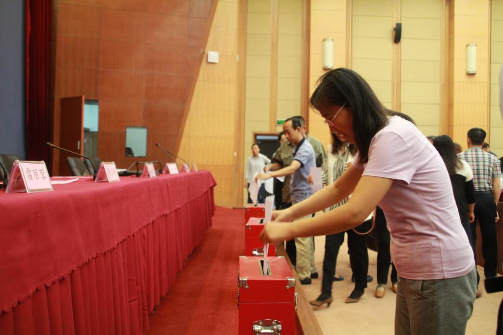 在工作人员的组织下,全体到场的工会会员认真填写选票并投下神圣的一票。计票结束后,总监票人杜鹃宣读了选举结果,王晓东、吉国宾、陈冬云、李儒、张璇、药恩情、彭兴旺七名同志选为中北大学人文社会科学学院新一届工会委员会委员。