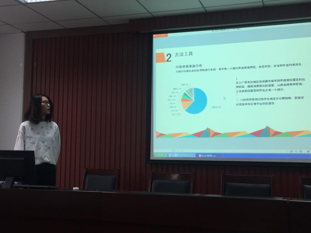 参加本次校创立项答辩的团队共10个,项目内容涉及到校园贷款与支付方式多元化、太原商业老字号历史发展现状调查、国家精准扶贫等多方面的社会热点话题。答辩中,各项目负责人采用PPT形式,向大家详细阐述了项目框架、创新点、研究方法、社会效益等内容。在认真听取每位负责人答辩并仔细研究项目选题后,各位评委从项目可行性、选题内容和操作流程这几方面进行提问,指出其中的亮点与不足,并对每个项目均提出了意见和建议。