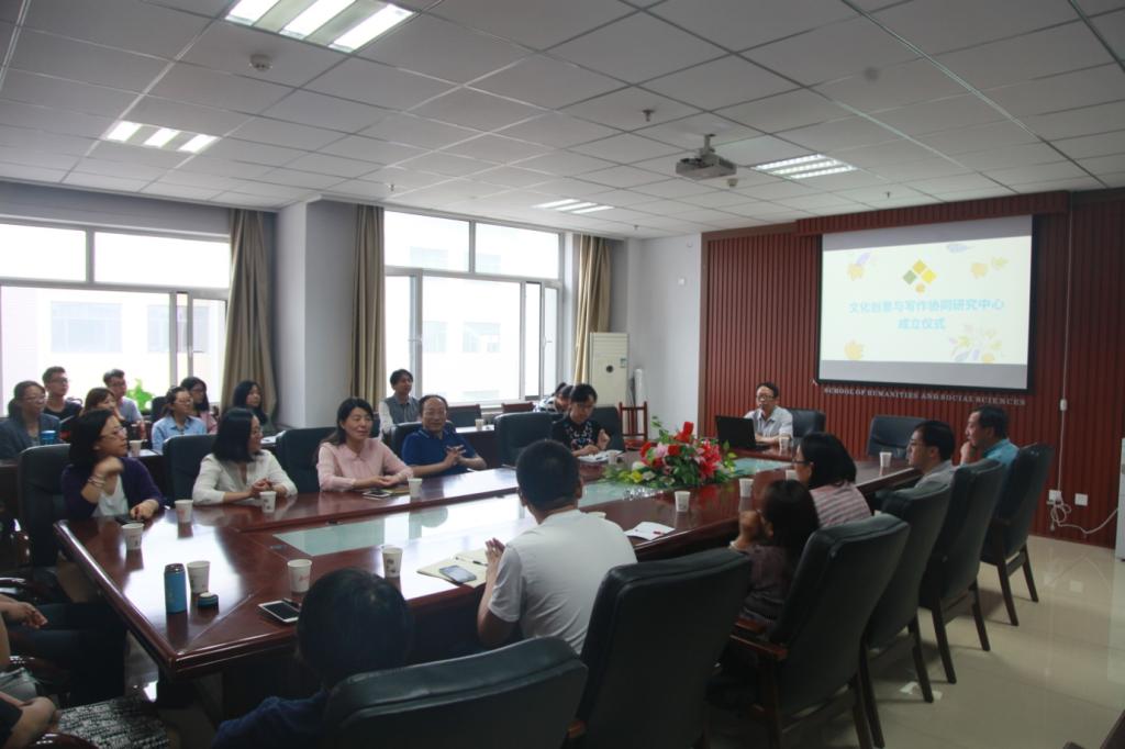 6月8日,文化创意与写作协同研究中心成立仪式在我校人文社会科学学院615会议室举行。党委宣传部部长薛实军,人文社会科学学院院长芮燕萍及相关部门领导、老师出席本次仪式。人文社会科学学院科研副院长杜鹃主持本次仪式。