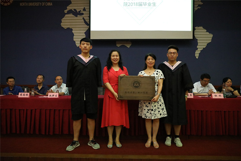 天涯海角有尽处,母校师恩无穷期。毕业生们怀着对母校的深厚情感,向母校赠送毕业纪念品,雷丽蓉书记与芮燕萍院长代表学院接受纪念品。学院也为每一位毕业生准备了精美别致的礼物——纪念火车票,由中北大学开往未来。每一张车票都是唯一的,都有自己的名字与班级,背面是与同学的班级合影。在前往未来的旅途上,大家携手同行,一起驶向诗和远方。