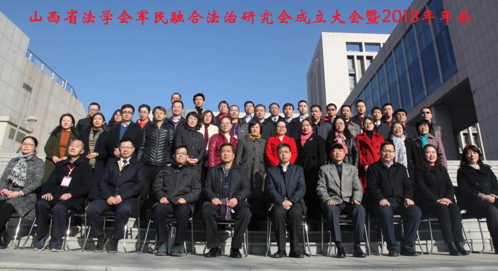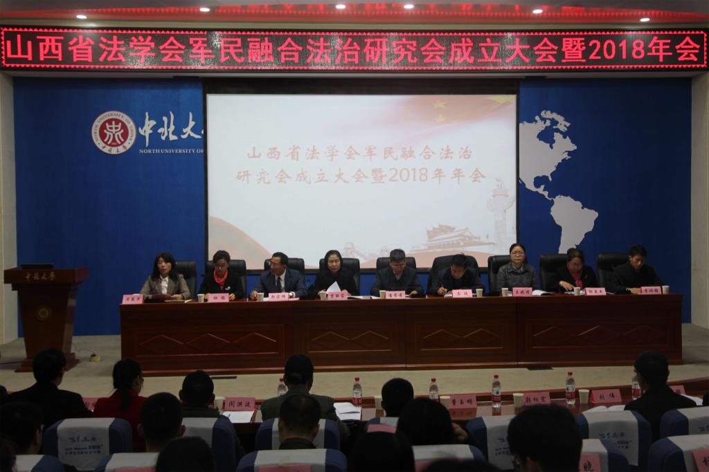 2018年11月24日上午,由山西省法学会主办、中北大学人文社会科学学院承办、山西国晋律师事务所协办的山西省法学会军民融合法治研究会成立大会在中北大学瑾瑜国际会议中心召开。中北大学副校长潘晋孝、山西省法学会党组成员、专职副会长马俊、人文社会科学学院党委书记雷丽蓉、院长芮燕萍、科研副院长杜鹃、山西国晋律师事务所主任郭宏伟、中国政法大学军事法研究所所长李卫海、《中国军转民》杂志社社长曹福成以及来自省内法学会的专家学者和实务部门代表等百余人参加了会议,山西省法学会副秘书长王晓瑾、省法学会研究部干部辛奇来也参加了会议。成立大会由人文社会科学学院院长芮燕萍主持。