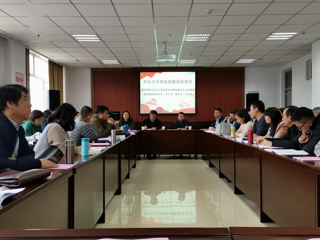 3月26日下午,校党委书记李忠人、党委副书记薛智来到思政部,与全体思想政治理论课教师进一步深入学习贯彻习近平总书记在学校思政课教师座谈会上的重要讲话精神,共同研讨如何办好思政课,进一步提高思政课抬头率、点头率、微笑率和认同率。人文社会科学学院党委书记雷丽蓉、人文社会科学学院副院长杜刚与思政部全体教师和部分思想政治教育专业研究生代表参加了座谈会。