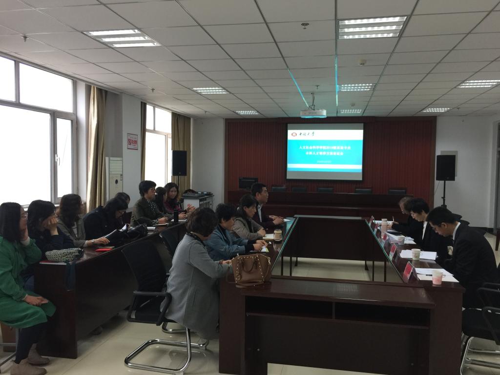 为全面贯彻落实教育部《普通高等学校本科专业类教学质量国家标准》,进一步优化人文社会科学学院专业人才培养方案,提高本科人才培养质量,按照学校统一要求,学院于2019年4月13日(周六)召开了英语专业2019版本科人才培养方案论证会,针对培养方案请专家进行“问诊”和“把脉”。会议特别邀请外研社副总编辑常小玲女士、南京师范大学外国语学院院长严志军教授、江南大学董剑桥教授、中北大学教务处副处长董小瑞教授、中北大学仪器与电子学院副院长刘文怡教授作为评审专家。人文社会科学学院院长芮燕萍教授、英语专业负责人李兵绒副教授及英语专业骨干教师出席了此次论证会,会议由人文社会科学学院教学副院长杜刚主持。
