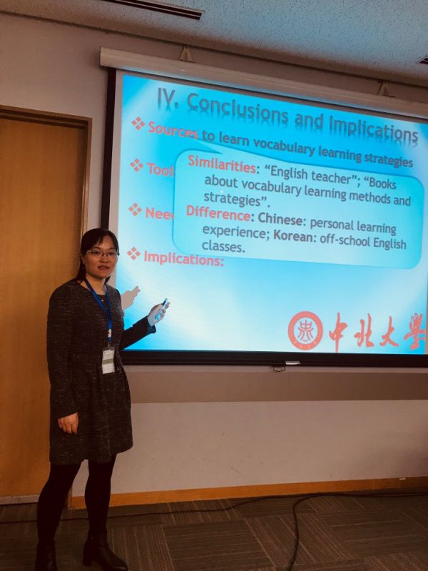4月9日-13日,我院英语专业教师杨珍前往日本大阪参加第八届ICLMC语言、媒体、文化国际会议,该会有分别来自美国、西班牙、澳大利亚等十几个国家的学者参与学术交流。杨珍在会上做了题目为《A Suggestion of Tailored Vocabulary Teaching for Chinese and Korean EFL Learners Based on an Online Survey》的学术报告,并作为分会场主持人之一,主持了分会场的相关报告活动。该学术报告根据中韩大学生的词汇学习网络问卷结果,对比分析了中韩学生在词汇学习策略获得途径、词汇学习手段以及学生词汇学习的教师需求三个方面的异与同,并为相关英语教师提出了具有针对性的教学建议。