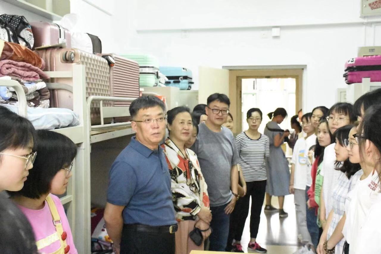 9月7日下午,在全体辅导员和新生班主任陪同下,校党委副书记薛智、院党委书记雷丽蓉、院党委副书记王晓东、副院长杜鹃进人文社会科学学院2019级新生宿舍,关心询问新生情况,勉励大家珍惜大学时光。