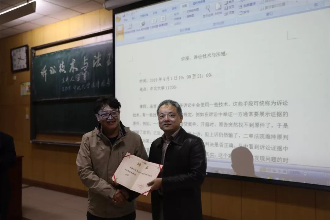 王军副教授以《诉讼技术与法理》为题,提出了比较研究法来研究法学问题,阐释了比较研究法的定义、作用等,为同学们此后研究法学问题的实践提供了一个重要的方法当提到逻辑推理时,佐以丰富的例子,向大家展示了法律推理在法律研究中的重要作用,逐步引导同学们意识到推理在法律事务中的重要性。他向大家解释了价值在法学中的定义,并介绍了价值分析方法可以解决的主要问题,让同学们进一步理解了价值分析方法。