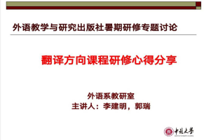 2020年9月22日下午四点半,外语系全体教师进行本学期第三次活动,主题为“外语教学专题研讨系列讲座”第三讲:翻译方向课程研修心得分享。