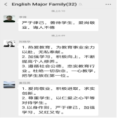 本次讨论活动是我院外语教师对师德师风建设学习资料的深入学习与探讨,为成为新时代有理想信念、有道德情操、有扎实学识、有人爱之心的“四有”好老师。会后,老师们意犹未尽,在外语系微信群里继续对师德师风建设进行讨论。