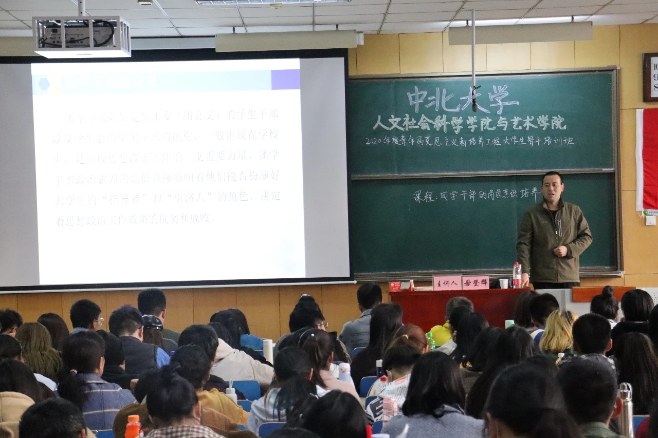 为深入学习贯彻落实习近平新时代中国特色社会主义思想,提高青年骨干思想道德素质和综合能力。11月1日,人文社会科学学院与艺术学院于11209H教室联合举办2020年青年马克思主义者培养工程大学生骨干培训。校团委书记顾宁、人文社会科学学院党委副书记王晓东、艺术学院团委书记杜鹃、人文社会科学学院团委乔洋出席本次培训开班典礼,两院全体学生干部参加此次培训。