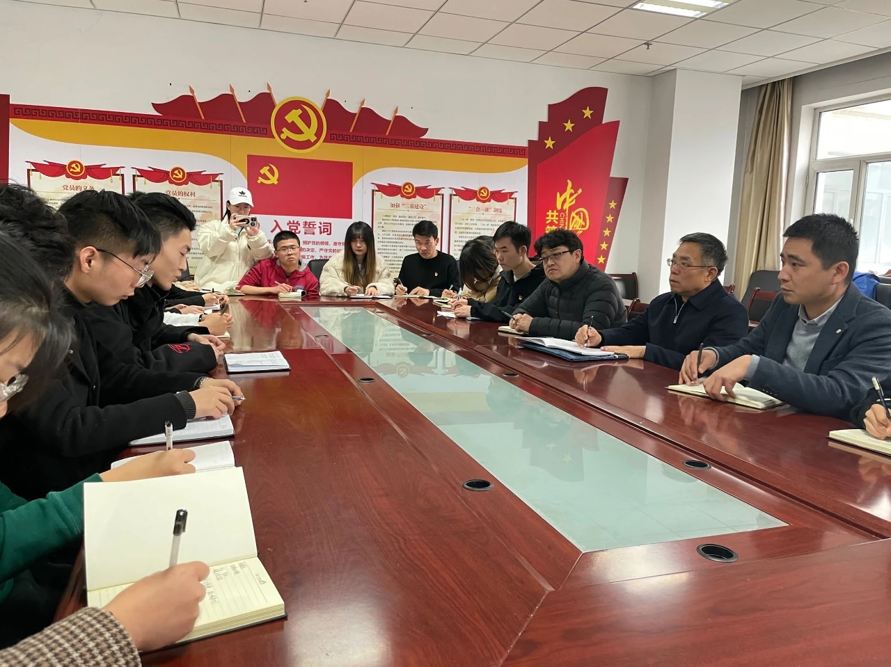 薛智副书记认真听取了大家的发言,和学生党员们就所关心的理论热点和时事政治展开了深入交流,对大家提出的问题和困难给予了针对性的解答和指导。薛书记对支部建设所取得的成绩和展现出的亮点给予了充分肯定,同时也围绕支部建设和党员作用发挥对学生党员们提出了三点希望和要求:一是要深刻认识支部建设的重要意义,要进一步加强支部建设,严格党员管理,树牢党员意识,增强党支部的凝聚力和战斗力。二是要持续加强规范化建设,严肃党内政治生活,严格落实党的组织生活制度,常态化开展理论学习。三是要正视不足,勇于改进,要借着本次座谈会中发现和指出的问题,正视不足和差距,认真总结反思,切实制定和落实整改措施,促进支部规范化建设提质增效。