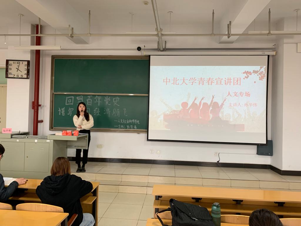 聚焦党史理论学习,以史鉴今,2021年4月8日下午四点人文社会科学学院团委在15406教室组织开展了以“回望百年党史,谱写中国经济腾飞”为主题的党史学习教育宣讲报告会。