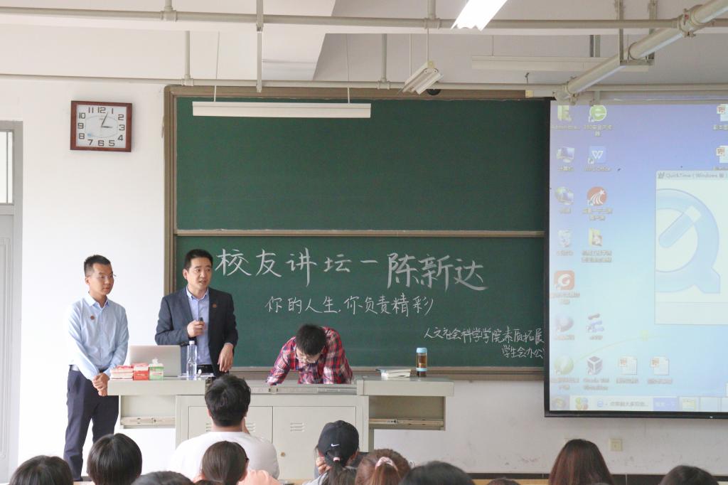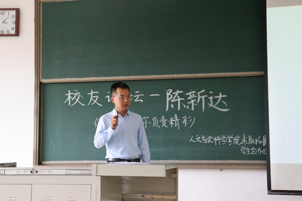 5月20日下午2点30分,就职于中建四局安装工程有限公司厦门分公司的英语专业2015届校友陈新达作为主讲人在15202教室开展了校友讲坛分享会,围绕“你的人生,你负责精彩”主题,从他读书时期的海外经历以及自身的迷茫期等多个方面生动地为学弟学妹们讲述了自己的故事,分享了他人生成长道路的经验教训和“读万卷书,行万里路,过百味人生”的道理。