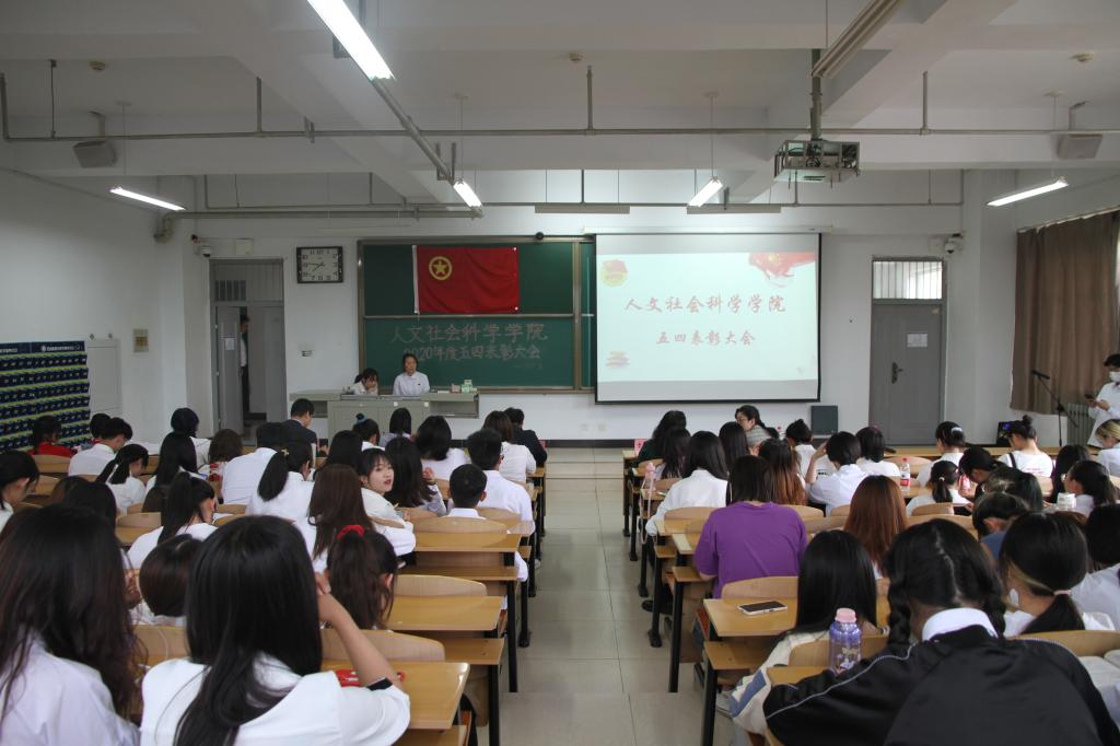 为弘扬五四精神,表彰先进,激励全院广大青年积极进取,以优异成绩共庆建党百年华诞,5月25日,人文社会科学学院在15402H教室举办“锚定新目标、奋发再起航”五四表彰大会。院党委书记雷丽蓉、党委副书记王晓东、副院长杜鹃及全体辅导员出席大会,获表彰先进集体代表、优秀个人及学生代表参加大会。