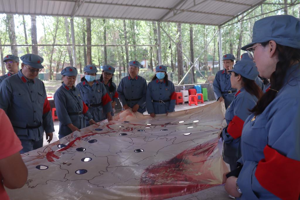 活动中,教工党员们自己动手拾柴火埋锅造饭,忆苦思甜,体验自力更生、艰苦奋斗精神;通过开展“红色运动会”的大生产运动、重走长征路、过独木桥、支援前线等项目,利用体育赛事的形式和规则,生动展示代表民族气节和风骨的红色文化,以寓教于乐的方式学习红色文化核心价值,让党员体验和感受团结协作、勇往直前精神。