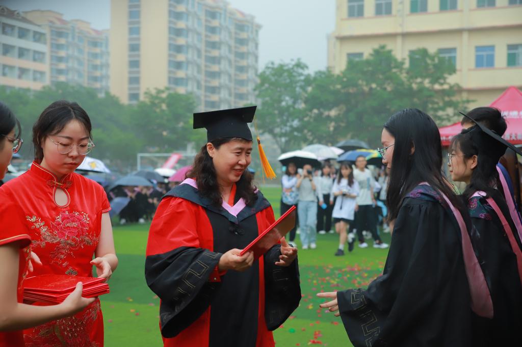 硕士毕业生代表霍炜和本科毕业生代表刘丽丽分别发言,寥寥数语中记录了他们由青涩走向成熟的每一个细节,抒发了对母校一草一木的眷恋之情。教师代表胡红艳老师寄语同学们要继往开来,再铸辉煌;在校生代表张砚希同学表达了对毕业生们的祝福。