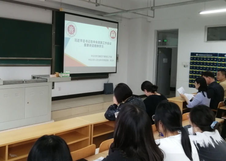 9月28日下午,中北大学“石榴花开”民族团结进步教育辅导员工作室组织工作室成员和人文社会科学学院全体少数民族同学认真学习习总书记在中央民族工作会议上的重要讲话精神。同时,为了增强少数民族学生教育管理工作的针对性与实效性,工作室按照少数民族学生的区域分布性特点,分别组织了四场少数民族学生座谈会。学生处申合娟与工作室加俊、阿迪力三位老师主持西北地区少数民族学生座谈会,工作室李娜、王盼两位老师主持西南地区少数民族学生座谈会,工作室赵竞、孟伟两位老师主持华南地区少数民族学生座谈会,工作室乔洋、周甜甜两位老师主持东北及内蒙古自治区少数民族学生座谈会。