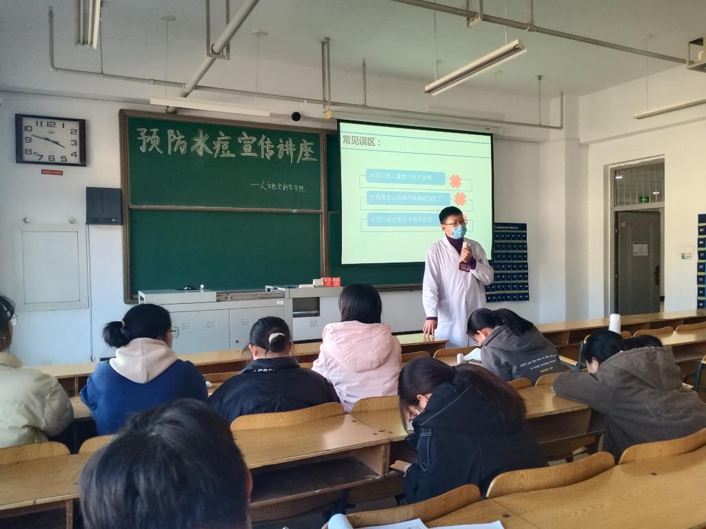 冬季是水痘疾病的高发季节。学院邀请校医院赵海滨医生主讲。赵医生告诫同学们教室里要经常开窗通风,多到户外活动,勤洗手,保持良好的个人卫生习惯。同时要坚持适度锻炼,增强体质,避免过度疲劳,保证充足的睡眠,预防水痘等疾病的发生。