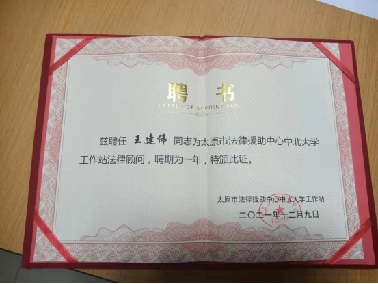 王建伟律师现为山西新东律师事务所副主任律师,兼任中华民族团结进步协会代表,第十三届全国青联委员。王建伟律师凭借丰富的经验,从对比硕士研究生、博士研究生律师的薪资待遇入手,讲解了不同学历对于律师从业的影响,引导学生思考如何成为优秀律师。他提出两点建议:一是将书本知识与司法实践相结合,做到致知于行;二是参与到考研、考公务员的队伍中,提升学历和阅历。在提问环节,王建伟律师热心解答了同学们对于学习和从业前景的疑惑,将讲座气氛推向高潮。王改琴老师受药恩情老师委托,代表法学系给王建伟律师颁发了法律援助中北大学工作站法律顾问聘书。