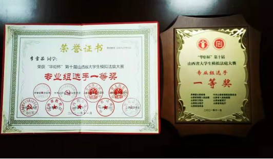 大会进行仪式颁发的奖项主要包括:本届大赛专业组、公开组的团体一、二、三等奖,最佳导师奖,最佳组织奖,以及选手一等奖(专业/公开)。中北大学荣获仪式颁发的奖项:专业组团体二等奖——中北大学(选手团队成员:中北大学人文社会科学学院法学专业李雪茹、周佳颖、高晨3位同学),最佳导师奖——中北大学法治服务双创平台(人文社会科学学院)负责人刘丹老师,专业组选手一等奖——中北大学人文社会科学学院法学专业李雪茹同学。