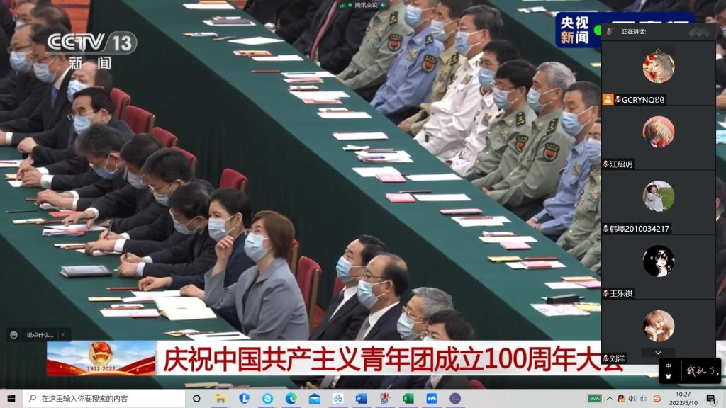 “青春孕育无限希望,青春创造美好明天。”5月10日上午,庆祝中国共产主义青年团成立100周年大会在北京人民大会堂隆重举行,习近平总书记发表重要讲话,人文社会科学学院全体学生收看大会直播。