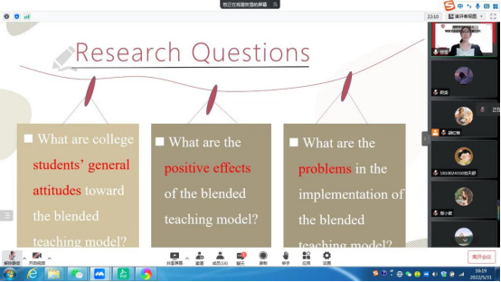 此次答辩,学生们全程开启视频并使用英文;答辩秘书做好了答辩记录及录像工作;专家老师们给出了具体而专业的指导建议;大家各司其职,顺利完成答辩工作。