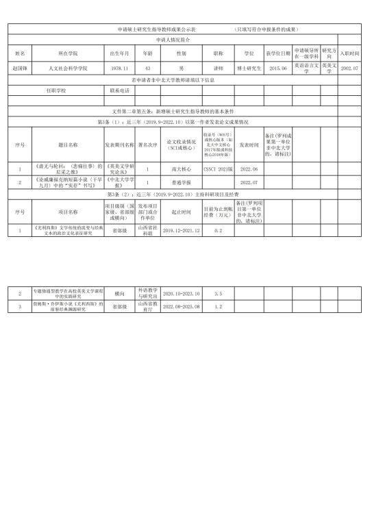 2022年10月17日,人文社会科学学院召开学院学位评定分委员会议,根据校学位办[2019]7号《关于印发<中北大学硕士研究生指导教师遴选办法>通知》,对2022年拟申请硕士研究生指导教师资格的3位老师进行推荐。会议应到评委9人,实到评委7人。分委员会委员详细审阅了3位申请教师的申报材料,最终按照无记名投票的办法向校评委会推荐3位申请老师: