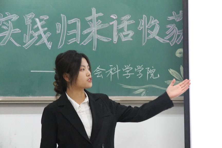 首先乔洋老师对此次社会实践工作进行总结,并对本次“实践归来话收获”活动致辞,希望学生认真总结、不断进取,把书本知识和社会实践有机结合起来,不断强化对社会实践活动机制的创新,为社会实践活动开辟新的领域。努力学习、创造性学习,获得更加优异的成绩。