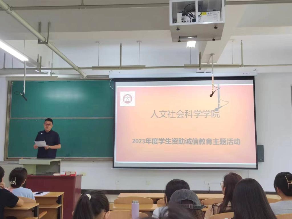 为深入推进资助育人政策,加强对学生的诚信教育、感恩教育、励志教育,引导学生珍爱信用,理性消费,树立正确的消费观和价值观,增强当代大学生的使命意识和责任担当,人文社会科学学院于6月14日上午9点开展2023年度学生资助诚信教育主题活动,学院党委副书记王晓东、辅导员、以及本学院全体在校曾办理生源地助学贷款的学生参与本次活动。