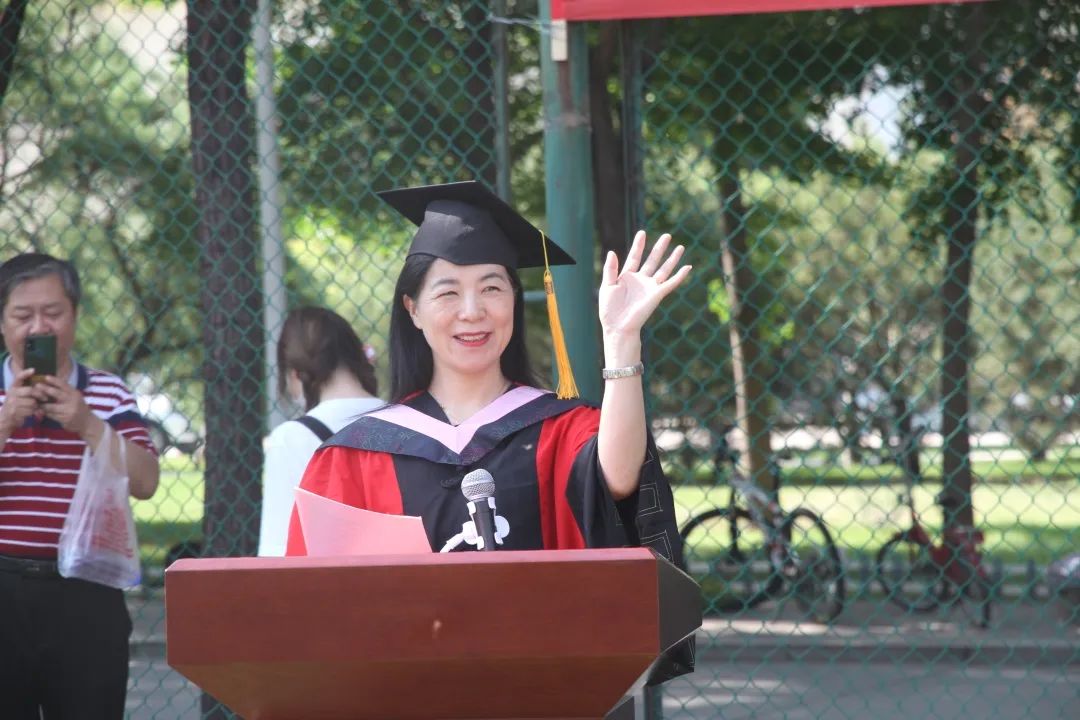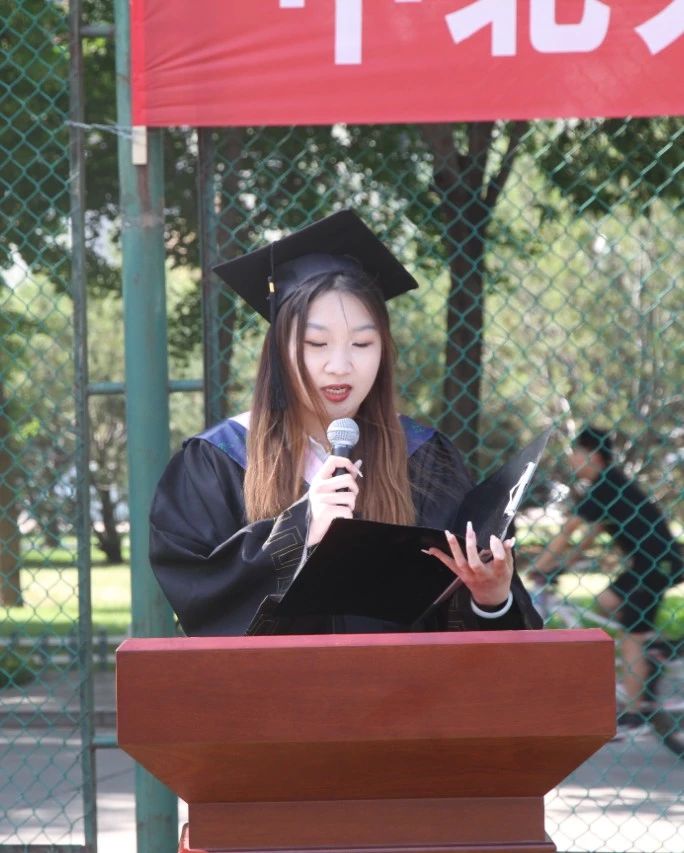 硕士生毕业生代表梁瑞璇、本科生毕业生代表张田、在校生代表钟露代表和教师杨珍依次发言,希望大家在新的人生旅途上,以天下为己任,立志做有理想、敢担当、能吃苦、肯奋斗的新时代好青年,勇立潮头、奋勇搏击,让青春绽放更绚丽的光芒!
