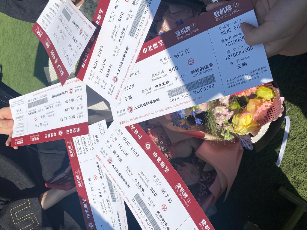 学校是学生的一处中转站,大家从大学阶段飞向各自不同的人生,学院为毕业生送上特制的“毕业机票”,前路不同,但皆繁花似锦。我们从四海汇聚,又终流向四海,为了致敬这一场相遇,各班进行了最后一次点名。这四年,是真真实实的四年,也是似真亦幻的四年。所有毕业生同声唱响歌曲,用歌声唱响对这四年的赞美与怀念。