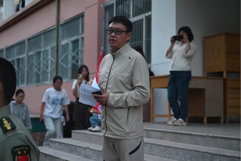 会中,王晓东书记作为十营营长对本次军训进行动员。王书记先向大家介绍各位教官,强调同学们要尊重教官、敬重师长。而后,王书记向同学们介绍我校深厚的红色底蕴,为同学们解读太行精神“不怕牺牲,不畏艰难;百折不挠,艰苦奋斗;万众一心,敢于胜利;英勇奋斗,无私奉献”,并希望各位同学在接下来的军训中能铭记这三十二字精神。