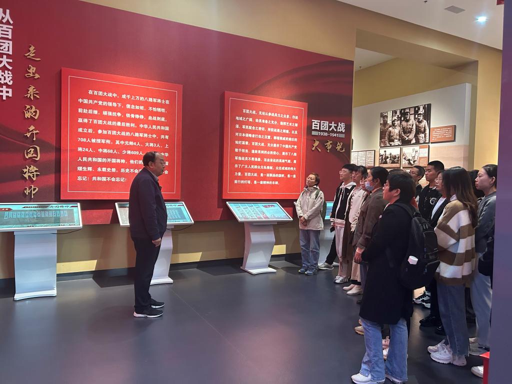 参观结束后,马克思主义学院党委书记段义权同志从百团大战战前的国际形势及百团大战对我国革命的重要意义等方面为师生们进行了现场教学。他讲到,百团大战打破了日军进军西北的意图,重击了日伪军的反动气焰,极大振奋了全国的抗战信心,是抗战中一次伟大的战役,其中涌现出来的千千万万革命烈士值得我们纪念。随后,马克思主义学院张慧玲老师也进行了现场授课。课后,教师代表及学生代表分别就本次参观学习分享了自己的感受和心得。