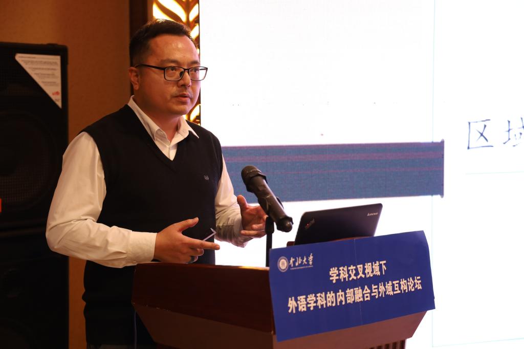 陈靓教授以《外语学科视域下的区域国别学科理论构建和研究路径》为主题,针对外语学科的特殊性,探析外语学科视域下的区域国别学科理论构建和研究路径。他强调要关注区域国别学研究的交叉性,对地区或国家进行多方位、多角度、大视野的研究。