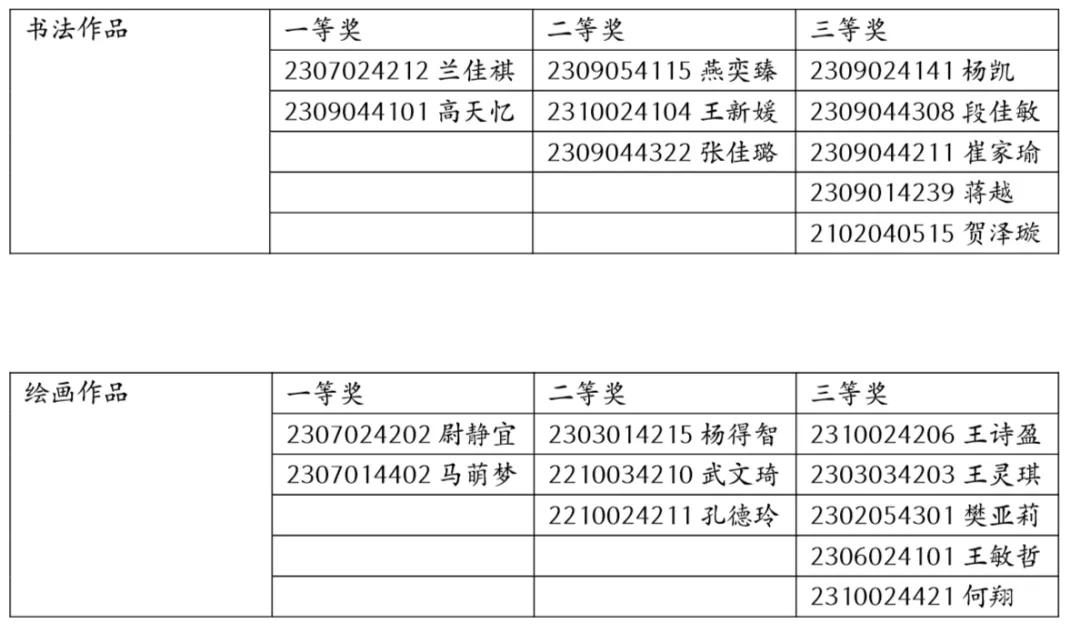 比赛得到了全校学生的积极响应,收到了众多优秀作品。经过评委们的严格评选,最终评选出了一等奖、二等奖、三等奖若干名。以下是本次比赛的获奖名单: