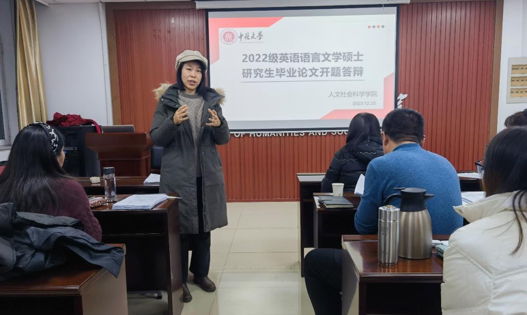 为全面落实提升研究生培养质量、强化过程管理的培养理念,结合研究生培养工作日程,2023年12月25日下午,我院举行了2022级硕士研究生学位论文开题答辩会议。我院英语语言文学专业研究生导师及2022级全体硕士研究生参会。本次答辩会特别邀请了山西大学冯薇教授担任评审组组长,2023级全体硕士研究生全程观摩学习。会议由刘陈艳老师主持。