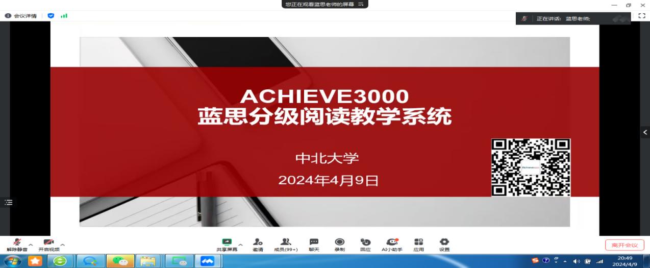 2024年4月9日晚20:30--21:30,外语系“蓝思分级阅读培训及定级测试”在线宣讲会议顺利进行。本次会议主要围绕“蓝思分级阅读培训及定级测试”相关事宜作介绍,160余名英语专业大一和大二学生参加了本次宣讲会议。