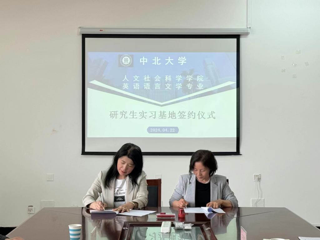 为促进研究生充分就业,落地人才培养战略,4月22日,我院院长芮燕萍、副院长廖高会、科研科科长彭兴旺一行三人前往太原工业学院外语部,签约中北大学人文社会科学学院英语语言文学专业研究生实习基地,太原工业学院外语部主任郭增卫、副主任张晓玲、办公室主任王瑞雪参加了签约仪式。