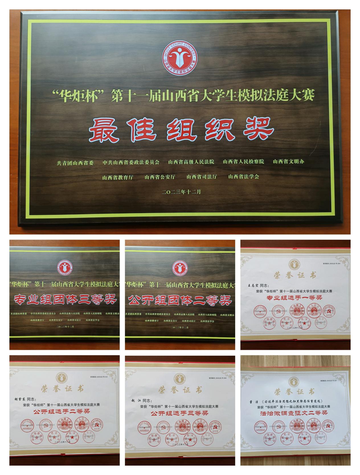 近期,共青团山西省委、中共山西省委政法委员会、山西省高级人民法院、山西省人民检察院等多家单位联合下发《关于“华炬杯”第十一届山西省大学生模拟法庭大赛的表彰决定》并颁发获奖奖牌与荣誉证书,我校荣获最佳组织奖、专业组团体三等奖和公开组团体二等奖,5名同学荣获奖项,人文社会科学学院刘丹老师荣获“最佳导师奖”;9名同学荣获法治微调查征文奖。