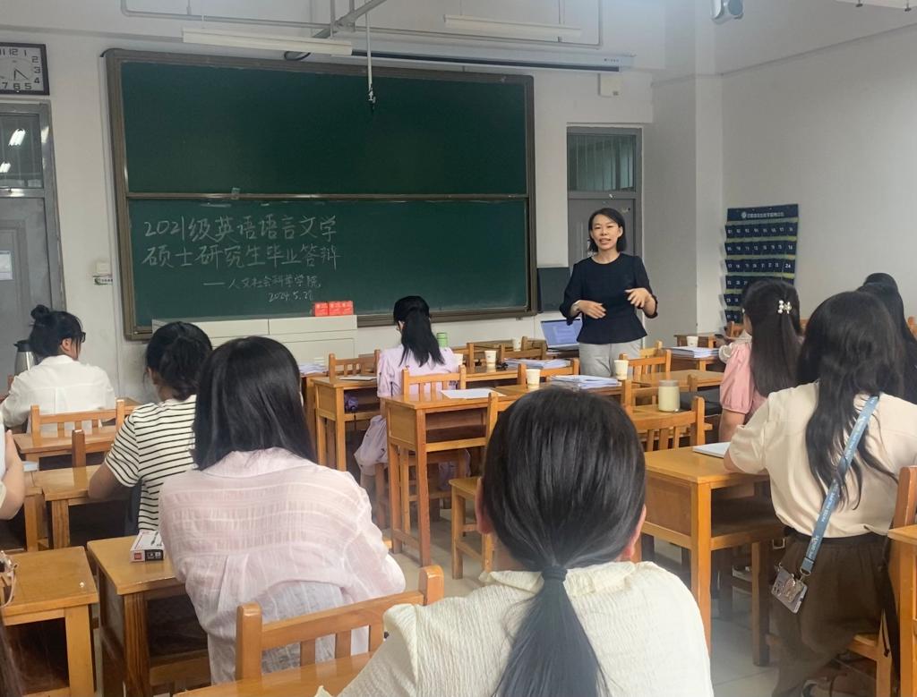 根据中北大学研究生院关于2024届硕士研究生学位论文毕业答辩工作安排,我院于5月28日下午举行了2024届英语语言文学专业硕士研究生学位论文答辩会。17名毕业生顺利完成论文答辩,其中包括2名国际留学生。