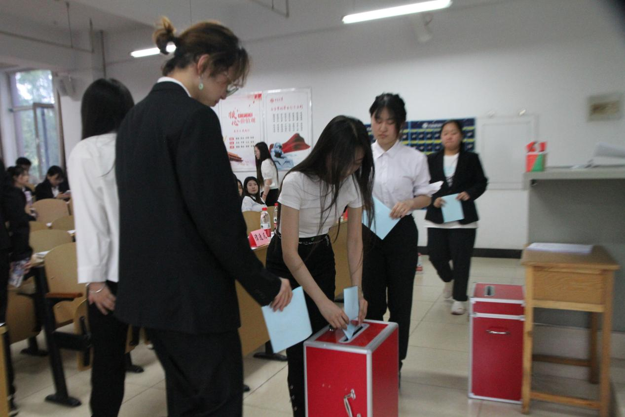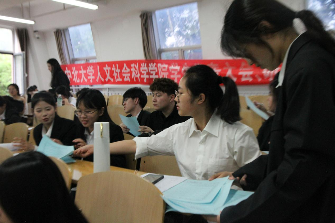大会第十项,学生代表投票选举人文社会科学学院第六届学生会主席团候选人。