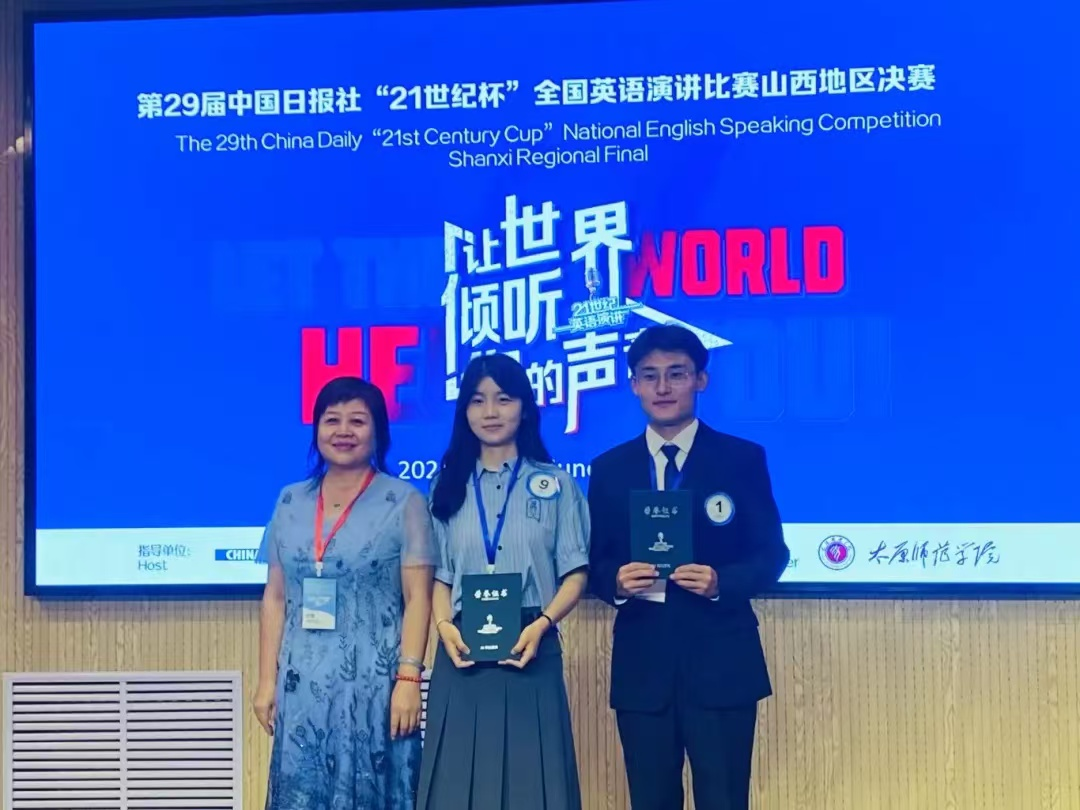 此前,在6月16日举办的山西省省赛中,我院2021级英语专业的张蔼添和梁墨怡同学与来自太原理工大学、山西师范大学等山西高校的优秀选手们强强相遇,展开对决。最终,张蔼添和梁墨怡两位同学表现突出,发挥出色,脱颖而出,分别获得山西省省级冠军和一等奖的好成绩。