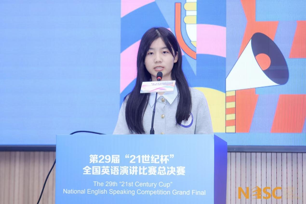10月21日,第29届中国日报社“21世纪杯”全国英语演讲比赛全国总决赛在江苏无锡圆满落幕。经过激烈角逐,我院2021级英语专业梁墨怡同学荣获全国总决赛三等奖。