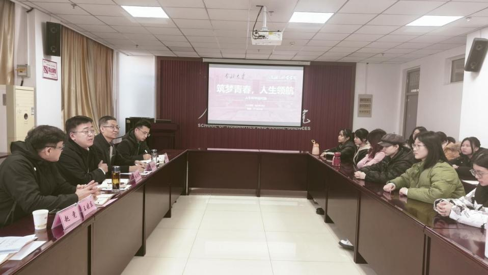 座谈会后,赵书记参加了21100246班“筑梦青春,人生领航---人生导师面对面”主题班会,他从考研和就业两个层面与同学们进行了热烈深入交流,并对同学们提出的问题和想法给予了细致的解答和积极的回应。最后,赵书记对同学们提出三点希望:一要注重提高道德修养,以品德润身;二要注重全面发展,拓展自身边界;三要勇担时代使命,奔赴广阔前程。他勉励同学们,要牢记习近平总书记嘱托,不负青春、不负韶华、不负时代,把握时代脉搏,树立远大理想,立志于服务社会、服务国家,争做有理想、敢担当、能吃苦、肯奋斗的新时代好青年,努力成长为堪当民族复兴大任的新时代经世致用领军人才,在全面建设社会主义现代化国家新征程上书写青春新篇章。