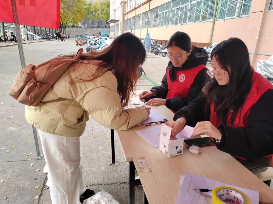 活动过程有条不紊、井然有序。活动现场,志愿者们都身着红色志愿者马甲,他们分工明确,各尽其责,积极安排每一位想要奉献爱心的同学顺利进行捐赠,协助捐赠同学认真填写表格,并且在捐赠完成后,给予同学们捐赠证明卡片和精美的小礼品,让同学们深刻感受到“赠人玫瑰,手留余香”的独特魅力。