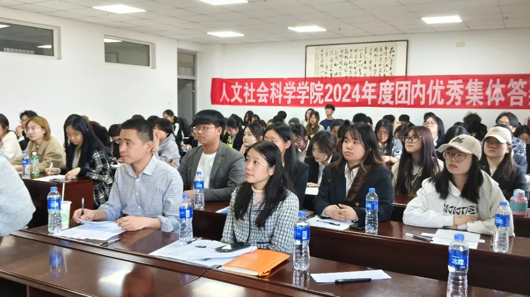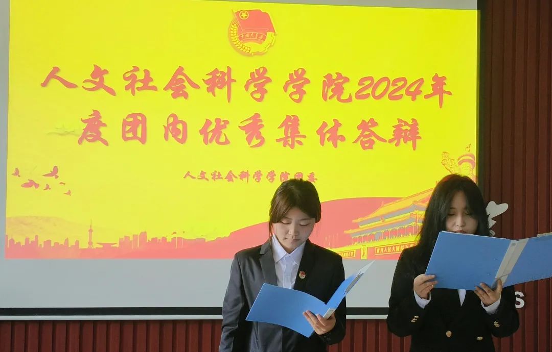 为加强基层团组织建设,增进各团支部互学互鉴,促进团员全面发展,2025年4月1日,人文社会科学学院的学生代表们于院楼502举行了2024年度团内优秀集体答辩,团委书记李娜,辅导员加俊老师出席此次活动。