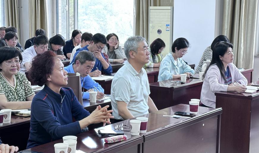 5月13日下午,一场聚焦大学英语教学质量提升的“大学英语全覆盖听课反馈交流会”,在人文社会科学学院五层会议室召开。本次会议旨在系统梳理大学英语教学实际,全面总结听课成果,深度反馈课堂教学中教学内容、方法及管理等方面的亮点与不足,为大学英语教学质量的进一步提升筑牢根基。学校教务部副部长杨朝明、校督导委员会主任委员张吉堂、尹四清、秦丽等6位督导,人文社会科学学院院长芮燕萍以及大学英语基础部全体教师参加了会议,会议由学院副院长杜鹃主持。