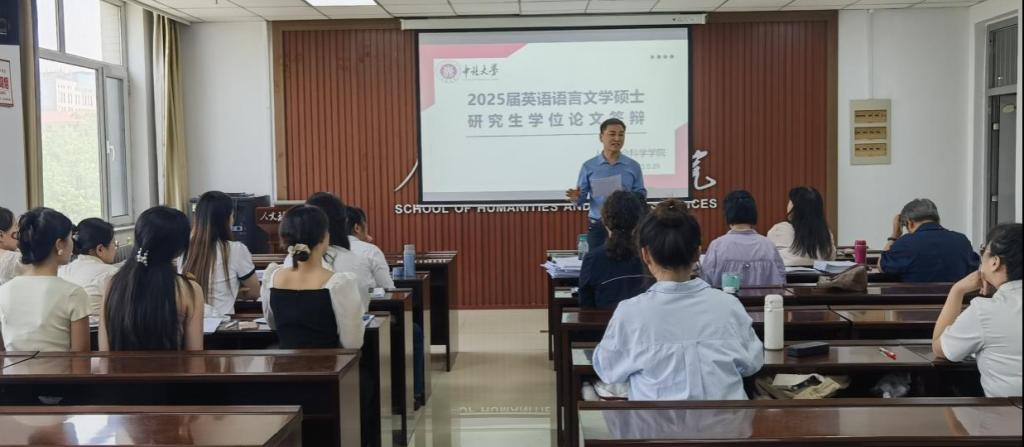 根据中北大学研究生院关于2025届硕士研究生学位论文毕业答辩工作安排,人文社会科学学院于5月29日上午举行了2025届英语语言文学专业硕士研究生学位论文答辩会。15名毕业生顺利完成论文答辩,包括2名国际留学生。