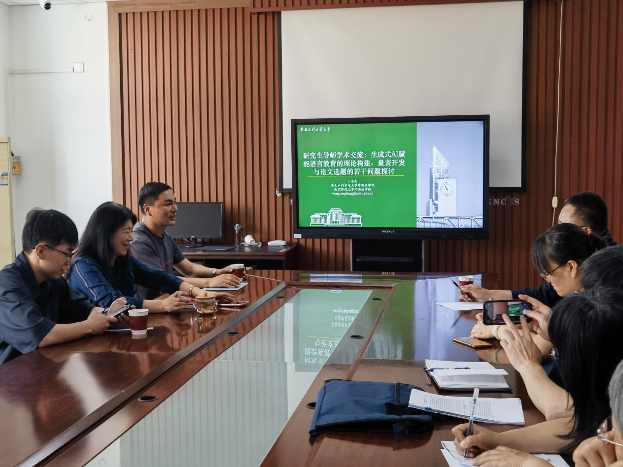 5月28日下午,人文社会科学学院邀请“全球前2%顶尖科学家影响力榜单”入围学者王永亮博士莅临学院,为我院研究生导师开展学术培训,其主题为“生成式AI赋能语言教育的理论构建、量表开发与论文选题的若干问题探讨”。培训由芮燕萍院长主持,学院全体研究生导师、骨干教师及研究生参加了本次活动。