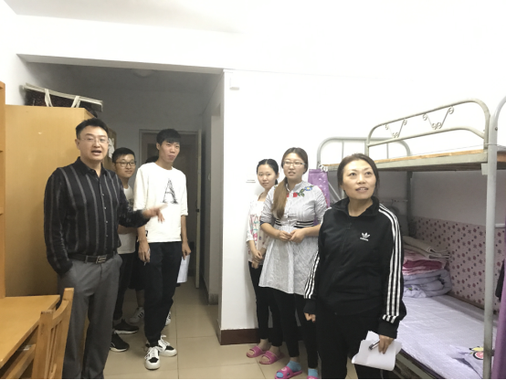在学生寝室里,王副书记和刘老师与学生亲切交谈,询问同学们是否住得习惯,了解同学们来校后遇到的各种困难并一一耐心解答。随后,王副书记还对同学们提出了以下几点要求:要搞好宿舍文化建设,共同维护好学习生活环境卫生;要加强宿舍安全管理,增强安全防范意识,确保宿舍安全工作做到位;要进一步提高节约用水用电意识;要努力加强科学研究。